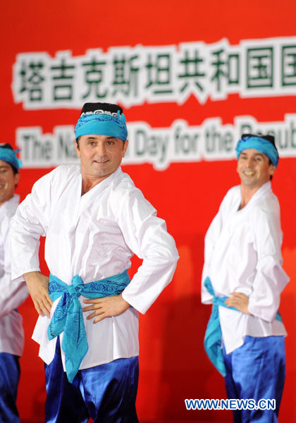 Artistes tadjiks lors d'une cérémonie pour la Journée nationale du pavillon du Tadjikistan à l'Exposition universelle de Shanghai 2010, le 22 septembre 2010.