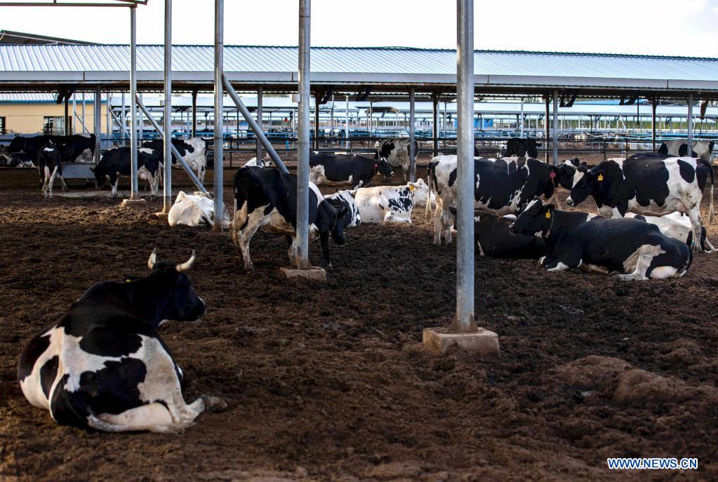 LINGWU, 10 septembre (Xinhua) -- Un élevage bovin dans le village de Shajiang de la ville de Lingwu, dans la région autonome Hui du Ningxia, dans le nord-ouest de la Chine, le 8 septembre 2021. (Photo : Yang Zhisen)
