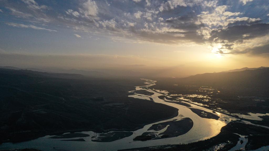 Vue aérienne du fleuve Jaune dans le district de Guide de la province chinoise du Qinghai (nord-ouest), le 27 octobre 2021. (Xinhua/Zhang Hongxiang)
