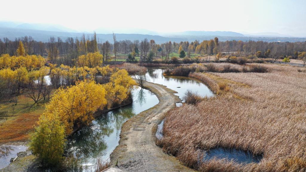 Paysage du lac Qianzi dans le district de Guide de la province chinoise du Qinghai (nord-ouest), le 28 octobre 2021. (Xinhua/Wu Gang)