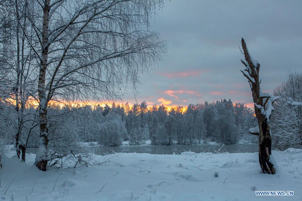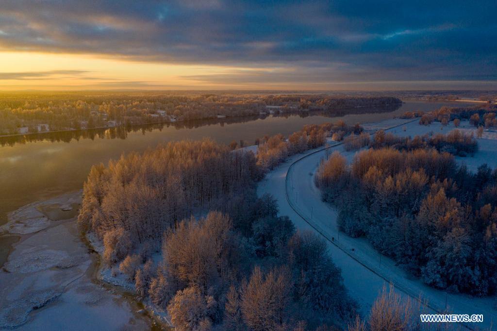 Paysage hivernal à Ogre, en Lettonie, le 7 décembre 2021. (Xinhua/Edijs Palens)