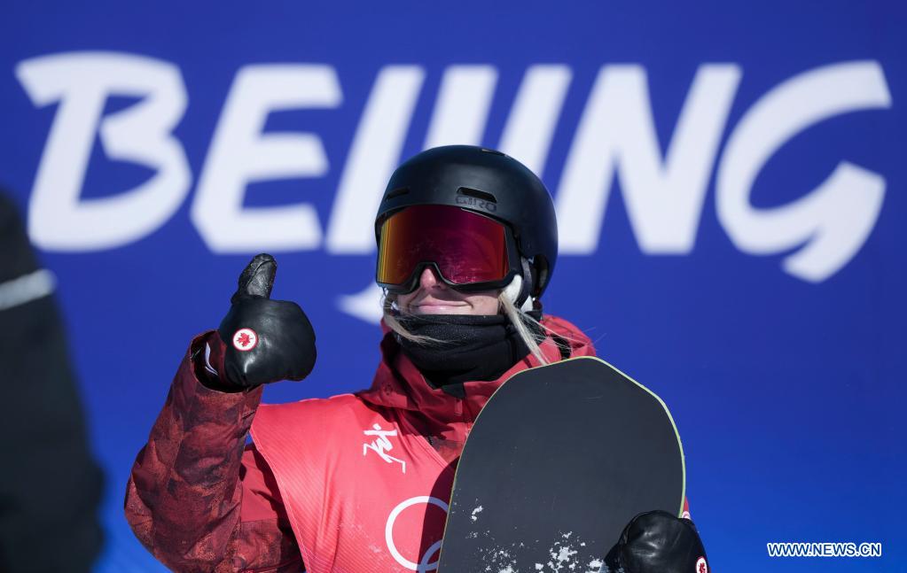 ZHANGJIAKOU, 5 février (Xinhua) -- Laurie Blouin, du Canada, lors de la qualification du snowboard slopestyle femmes au parc à neige de Genting à Zhangjiakou, dans la province chinoise du Hebei (nord), le 5 février 2022. (Photo : Xue Yubin)