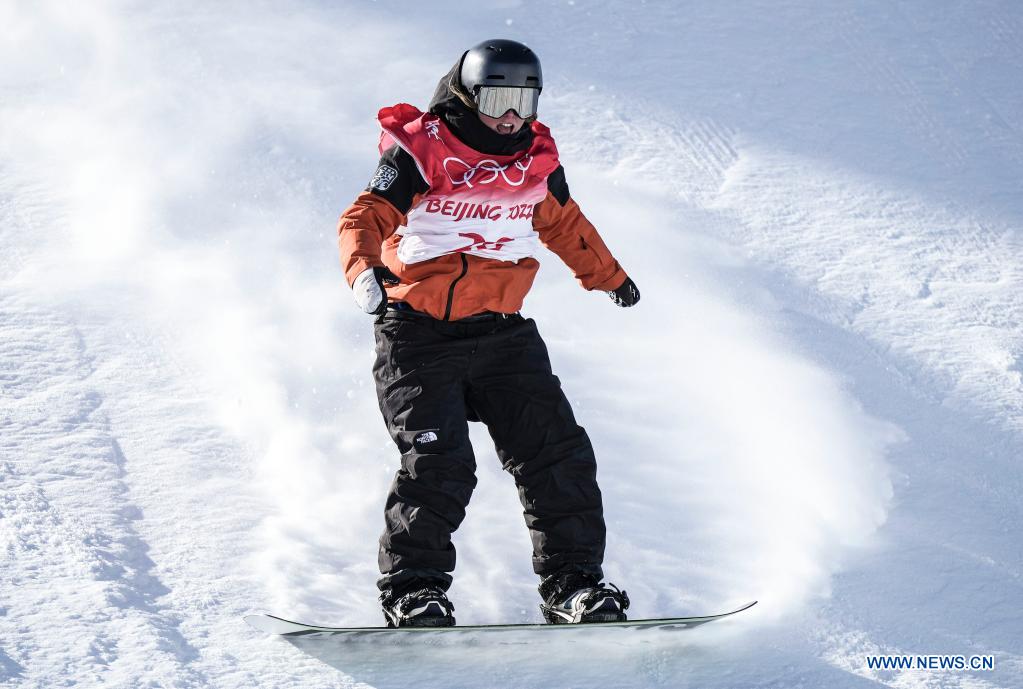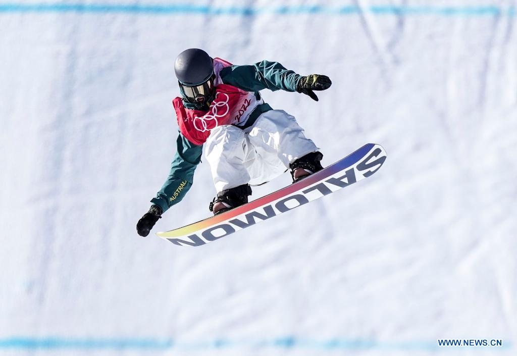ZHANGJIAKOU, 5 février (Xinhua) -- Tess Coady, d'Australie, lors de la qualification du snowboard slopestyle femmes au parc à neige de Genting à Zhangjiakou, dans la province chinoise du Hebei (nord), le 5 février 2022. (Photo : Xue Yubin)