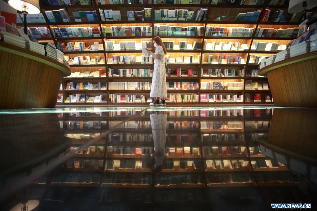 Une femme lit dans une librairie à Yangzhou, dans la province du Jiangsu (est de la Chine), le 3 mai 2022, le quatrième jour des vacances de la fête du Travail. (Xinhua/Meng Delong)