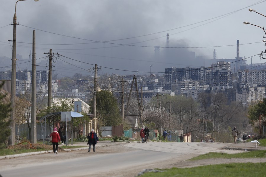 Photo prise le 21 avril 2022 montrant l'usine d'Azovstal dans la ville portuaire de Marioupol, en Ukraine. (Victor/Xinhua)