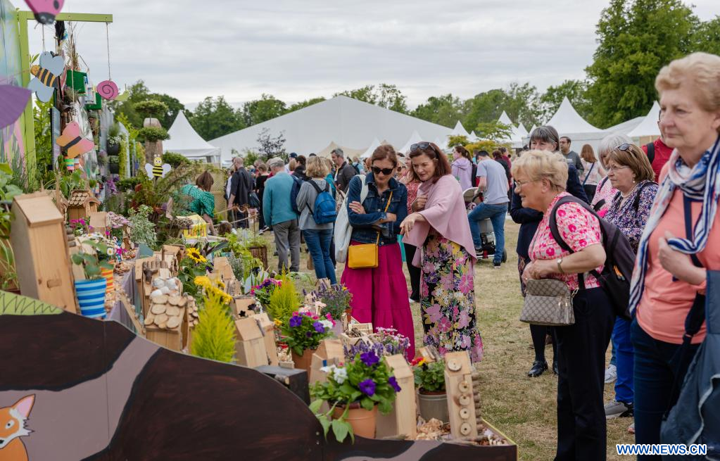 DUBLIN, 3 juin (Xinhua) -- Des visiteurs dans un festival du jardinage à Dublin en Irlande le 2 juin 2022. La 16e édition du Bord Bia Bloom, un festival national du jardinage et de la gastronomie, s'est ouverte jeudi à Dublin. (Xinhua/Liu Yanyan)