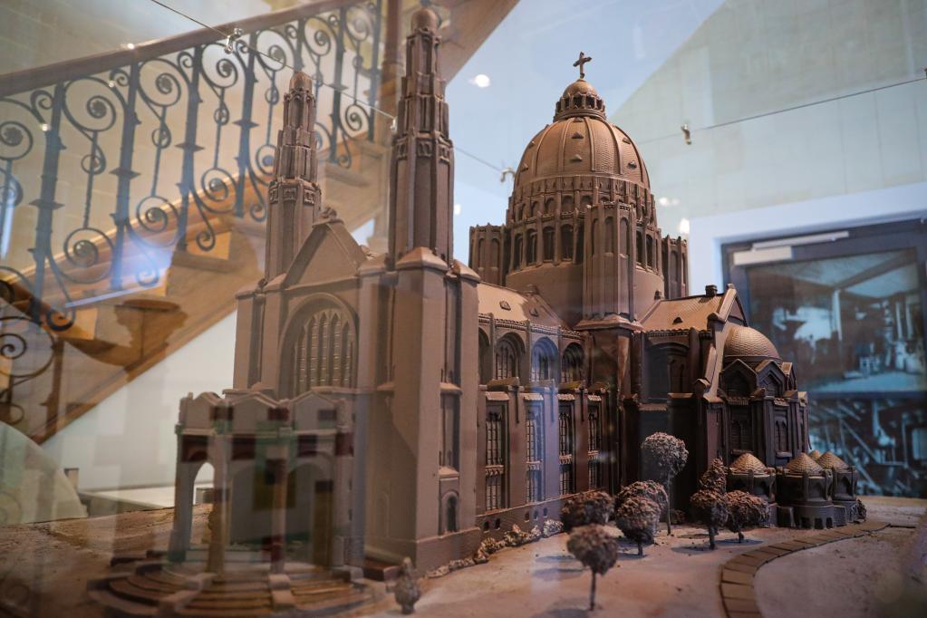 BRUXELLES, 9 juin (Xinhua) -- Une sculpture de la Basilique du Sacré-Coeur de Koekelberg en chocolat est exposée au Belgian Chocolate Village, à Bruxelles, en Belgique, le 9 juin 2022. Le Belgian Chocolate Village est un musée pour présenter les connaissances, l'histoire et la culture du chocolat. (Xinhua/Zheng Huansong)
