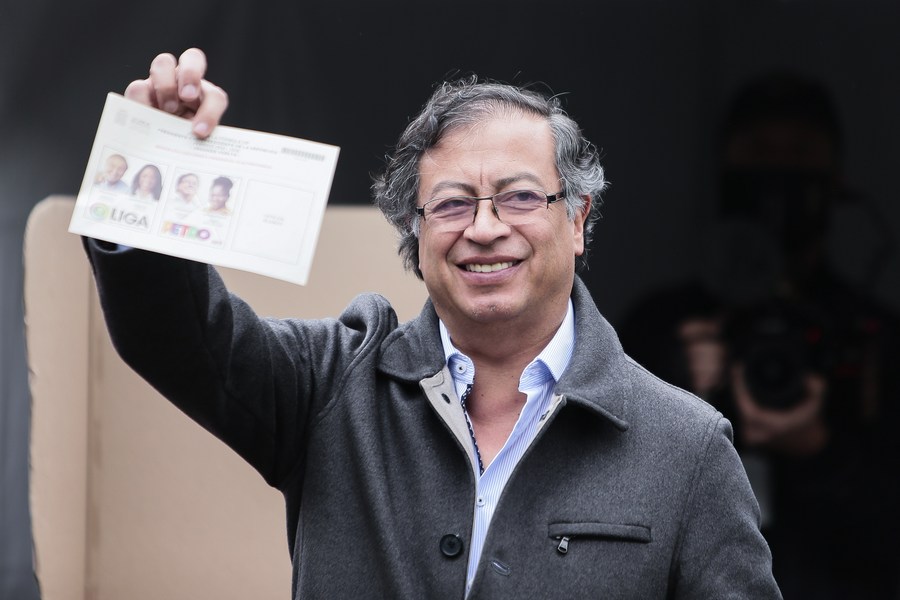 Le candidat à la présidence colombienne Gustavo Petro au second tour de la présidentielle dans un bureau de vote de Bogota, en Colombie, le 19 juin 2022. (Xinhua/Jhon Paz)