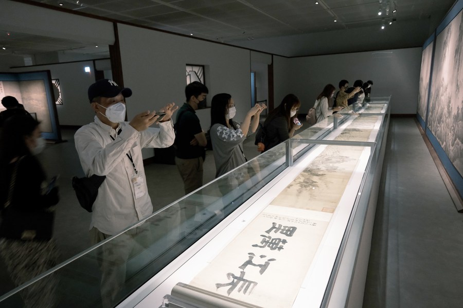 Des visiteurs prennent des photos d'un objet exposé au Musée du Palais de Hong Kong, à Hong Kong, dans le sud de la Chine, le 3 juillet 2022. (Photo : Wang Shen)