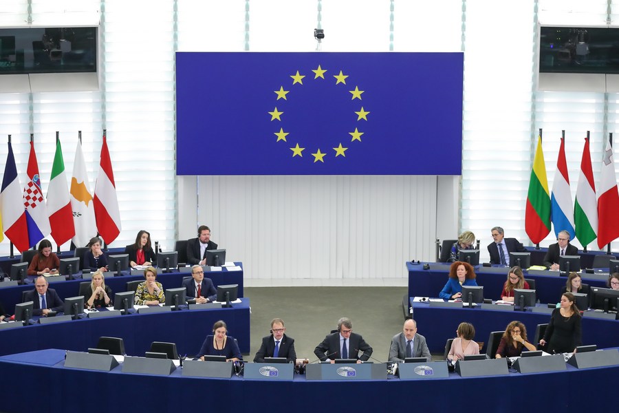 Le Parlement européen tient une session plénière à son siège à Strasbourg, en France, le 27 novembre 2019. (Xinhua/Zhang Cheng)