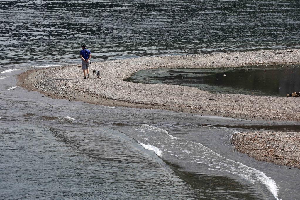 COMO (Italie), 14 juillet (Xinhua) -- Photo prise le 13 juillet 2022 montrant le bas niveau d'eau du lac de Côme, dans la région de Lombardie, dans le nord d'Italie. Les Italiens se préparent à une nouvelle vague de chaleur et de sécheresse mercredi, des météorologues prévoyant des températures record et des experts mettant en garde contre une crise du secteur agricole du pays. (Xinhua/Str)