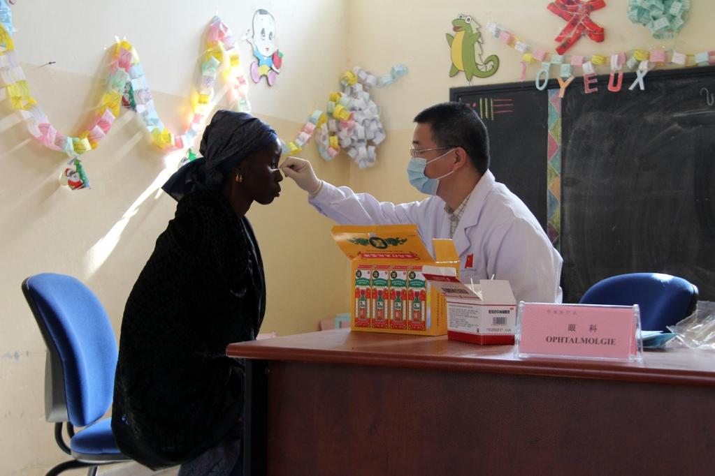 Photo d'archives montre un médecin de l'équipe médicale chinoise au Sénégal examinant les yeux d'une patiente à Dakar, capitale sénégalaise, le 20 décembre 2014. (Xinhua/Wang Meng)