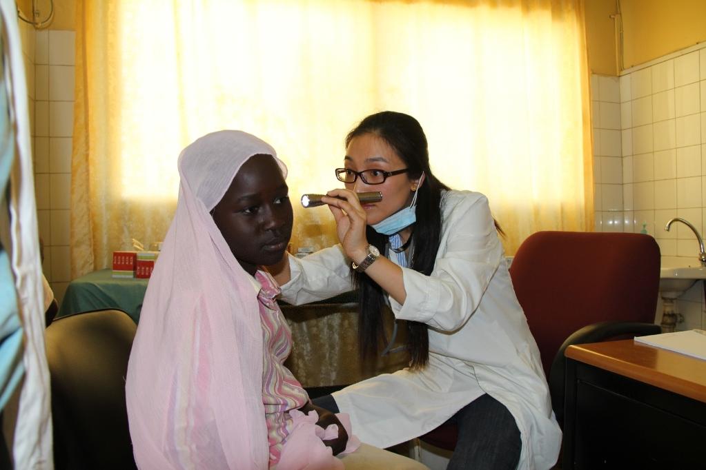 Photo d'archives montre une femme médecin de l'équipe médicale chinoise au Sénégal examinant l'oreille gauche d'une patiente au Centre de santé de Hann sur Mer à Dakar, capitale sénégalaise, le 31 mars 2013. (Xinhua/Wang Meng)