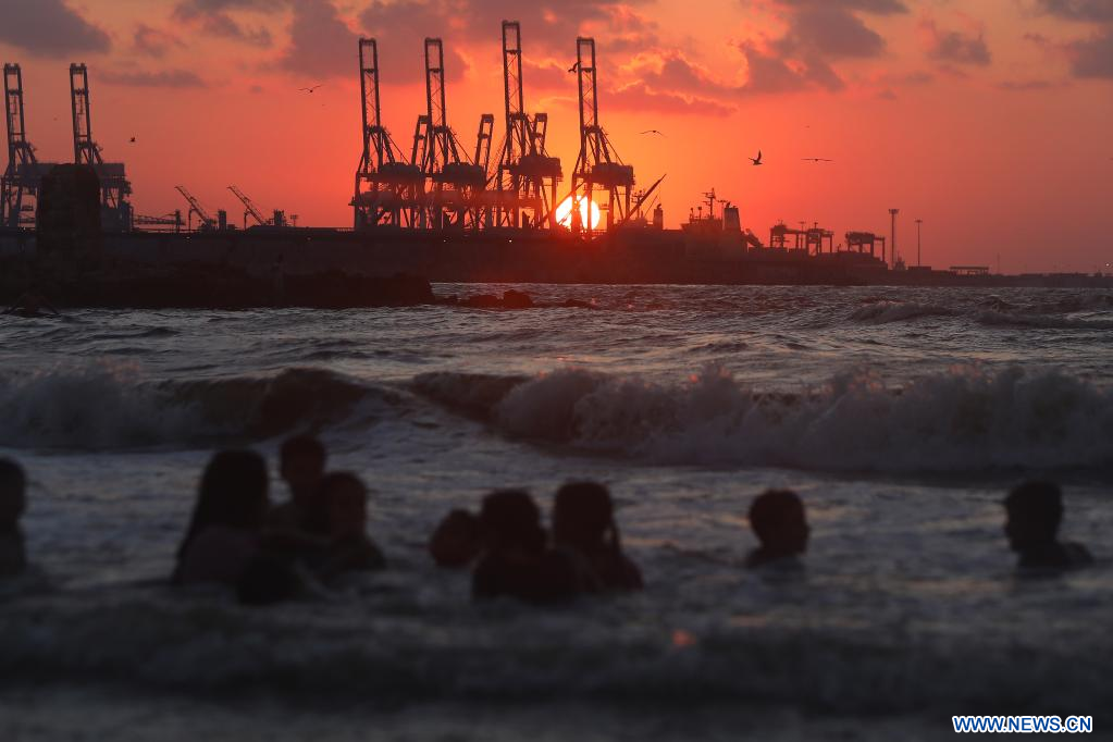 ALEXANDRIE (Egypte), 13 août (Xinhua) -- Coucher du soleil sur une plage d'Alexandrie, en Egypte, le 13 août 2022. (Xinhua/Ahmed Gomaa)