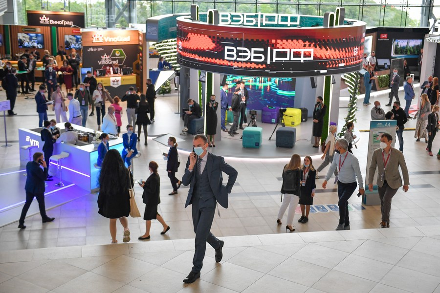 Des visiteurs au 7e Forum économique de l'Est (EEF) à Vladivostok, en Russie, le 5 septembre 2022. (Xinhua/Alexander Zemlianichenko Jr)