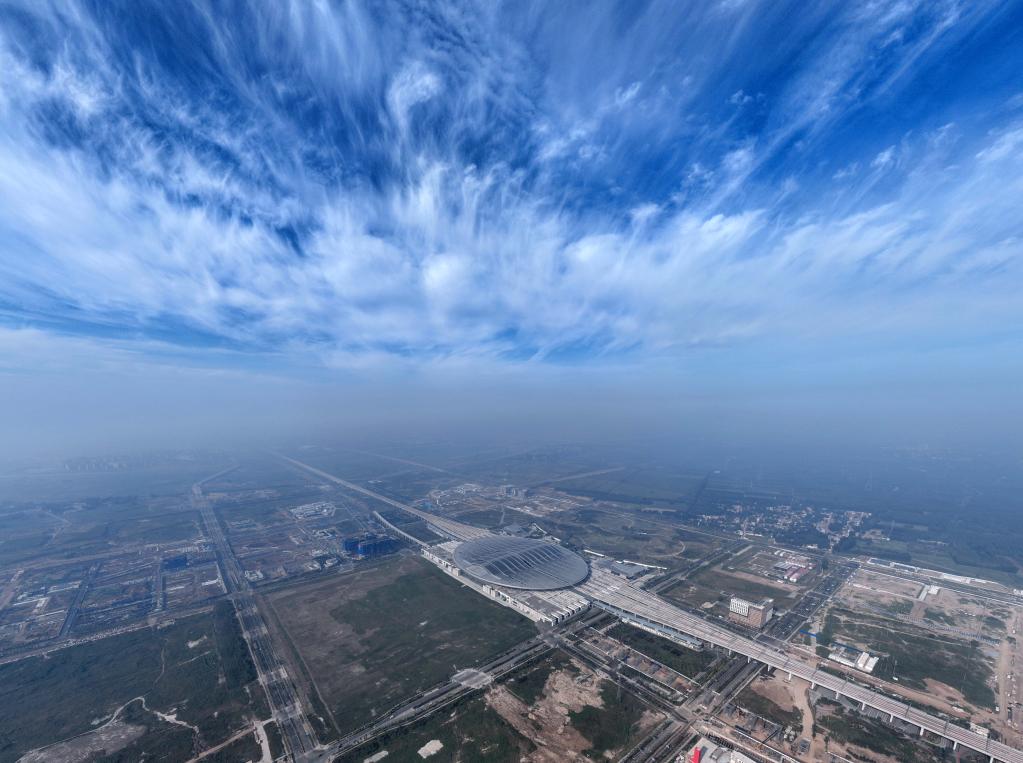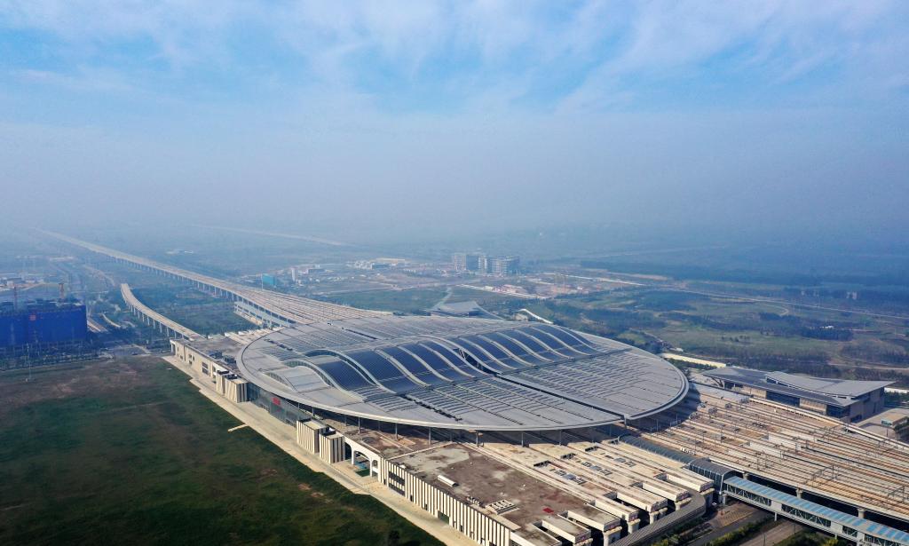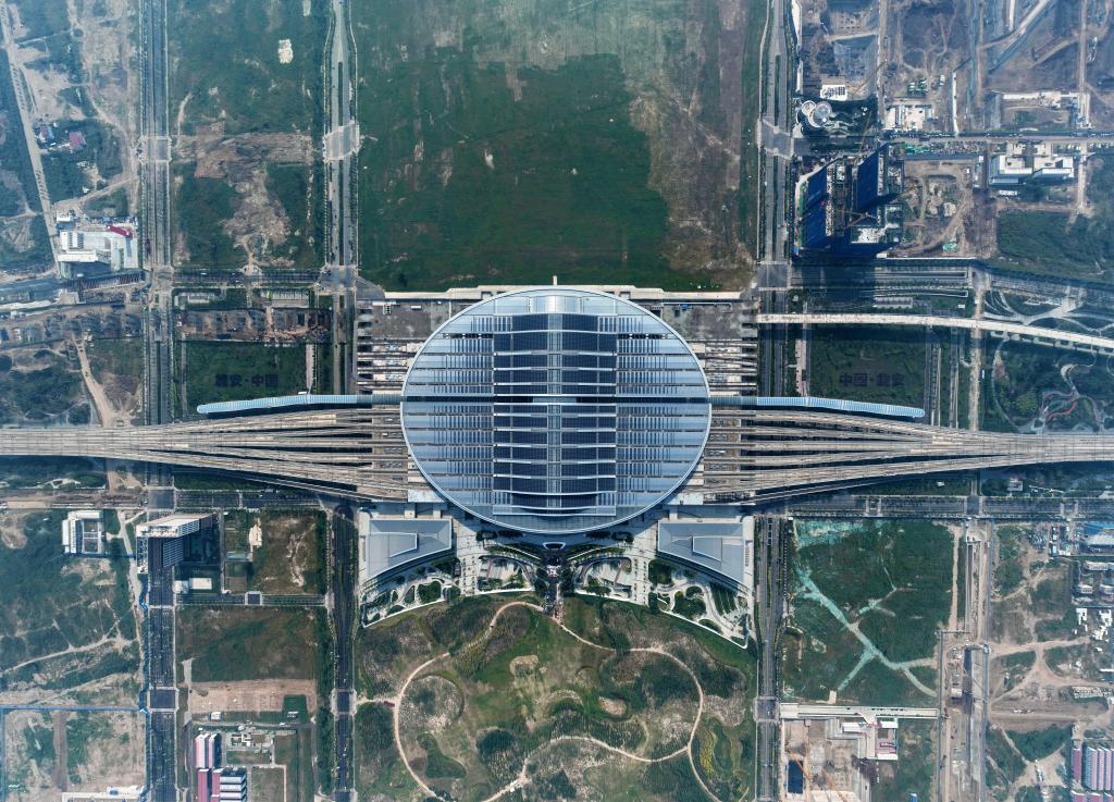 Photo aérienne de la gare de Xiong'an, dans la Nouvelle Zone de Xiong'an, de la province chinoise du Hebei (nord), le 9 septembre 2022. (Photo : Xing Guangli)