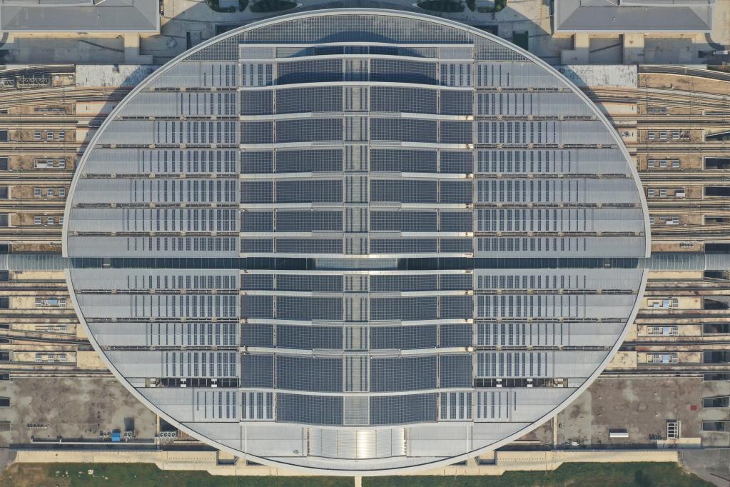 Photo aérienne de la centrale photovoltaïque distribuée sur le toit de la gare de Xiong'an, dans la Nouvelle Zone de Xiong'an, de la province chinoise du Hebei (nord), le 9 septembre 2022. (Photo : Zhu Xudong)