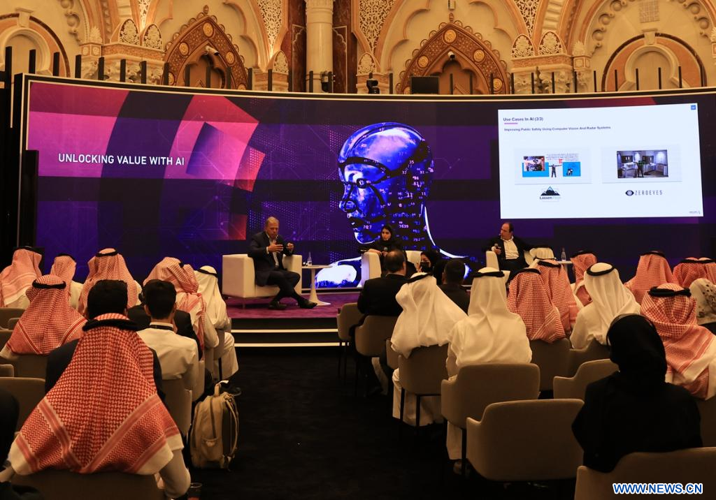 RIYAD, 13 septembre (Xinhua) -- Des participants au Sommet mondial sur l'intelligence artificielle (IA) 2022 à Riyad, en Arabie saoudite, le 13 septembre 2022. Le sommet s'est ouvert mardi. (Xinhua/Hu Guan)