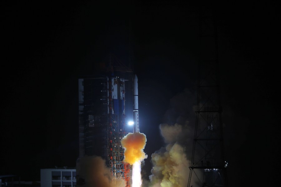 XICHANG, 27 septembre (Xinhua) -- Une fusée porteuse Longue Marche-2D transportant le satellite Yaogan-36 a décollé depuis le Centre de lancement de satellites de Xichang, dans la province chinoise du Sichuan (sud-ouest), le 26 septembre 2022. Le satellite a été lancé à 21h38 (heure de Beijing) et est entré en orbite avec succès.