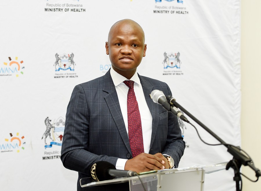 Le ministre botswanais de la Santé, Edwin Dikoloti, prend la parole lors de la séance inaugurale du comité de référence de l'Institut de la santé publique (BPHI) à Gaborone, au Botswana, le 4 octobre 2022. (Tshekiso Tebalo/Xinhua)