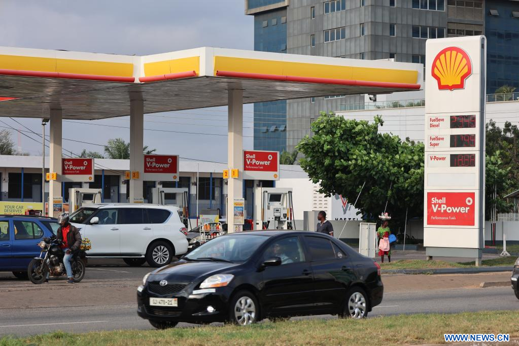 ACCRA, 10 novembre (Xinhua) -- Une voiture passe devant une station-service d'Accra, au Ghana, le 10 novembre 2022. L'inflation annuelle au Ghana continue d'augmenter pour atteindre 40,4% en octobre, a déclaré mercredi le Service statistique du Ghana. (Xinhua/Seth)