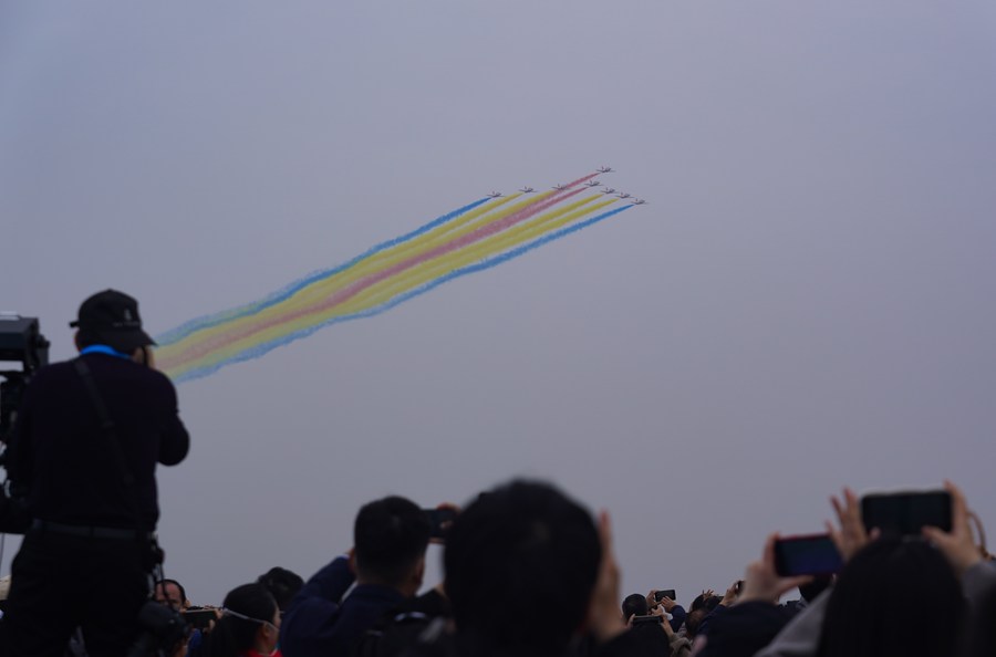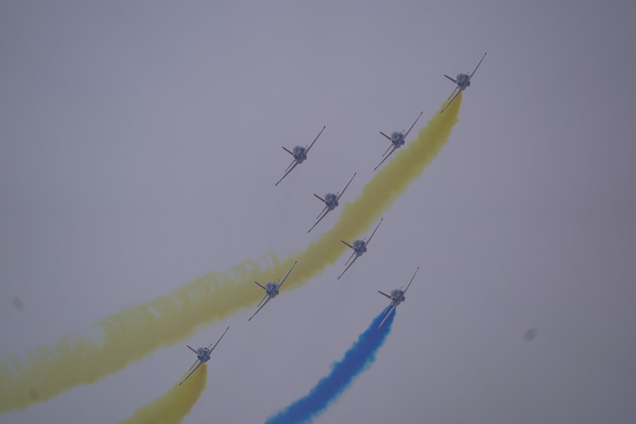 Des avions de l'équipe d'acrobatie aérienne Hongying lors du Salon aéronautique de Nanchang, à Nanchang, dans la province chinoise du Jiangxi (est), le 25 novembre 2022. (Photo : Zhou Mi)