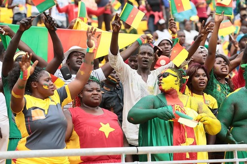 Des supporters de l'équipe féminine de football du Cameroun encouragent leur équipe lors de l'ouverture de la Coupe d'Afrique des nations (CAN) féminine de football 2016 dans un stade de Yaoundé, la capitale du Cameroun, le 19 novembre 2016. (Xinhua/Fabrice Ngon)