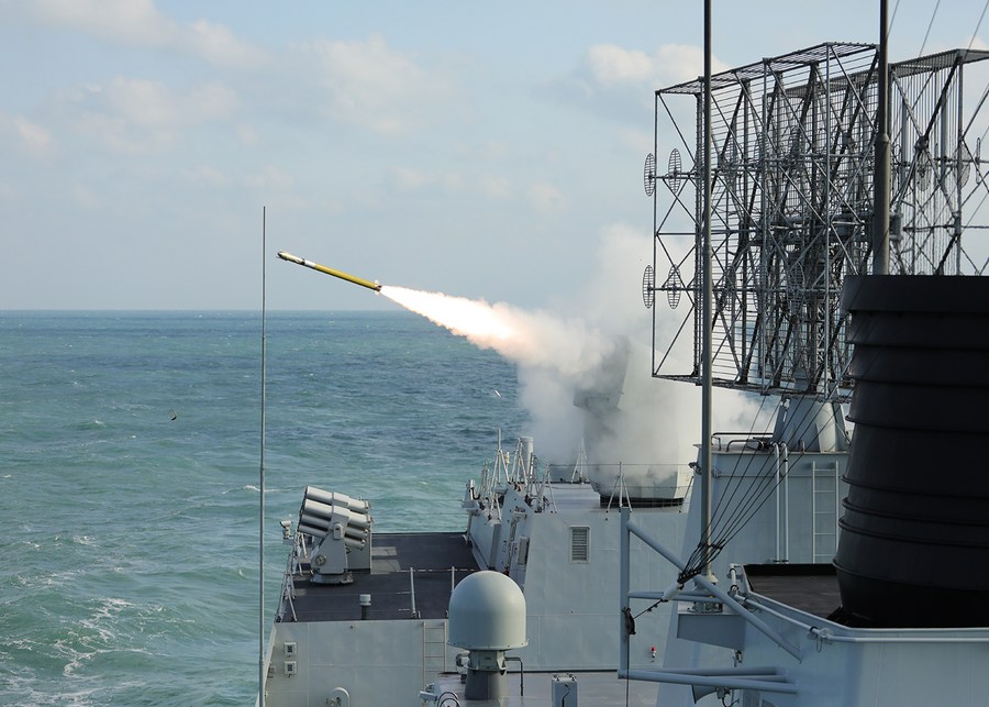 La frégate de la marine chinoise Binzhou participe à l'exercice naval conjoint "Joint Sea 2022", en mer de Chine orientale, le 26 décembre 2022. (Photo : Xu Wei)