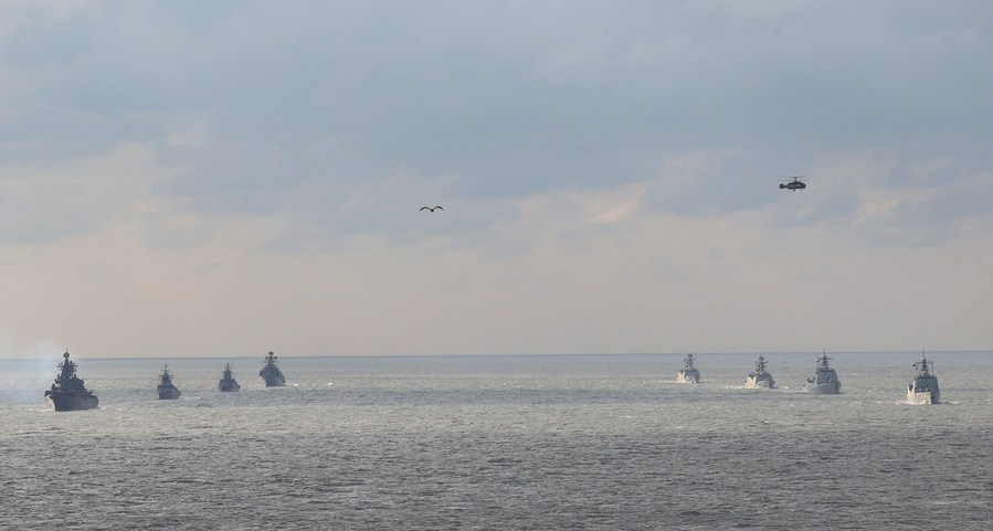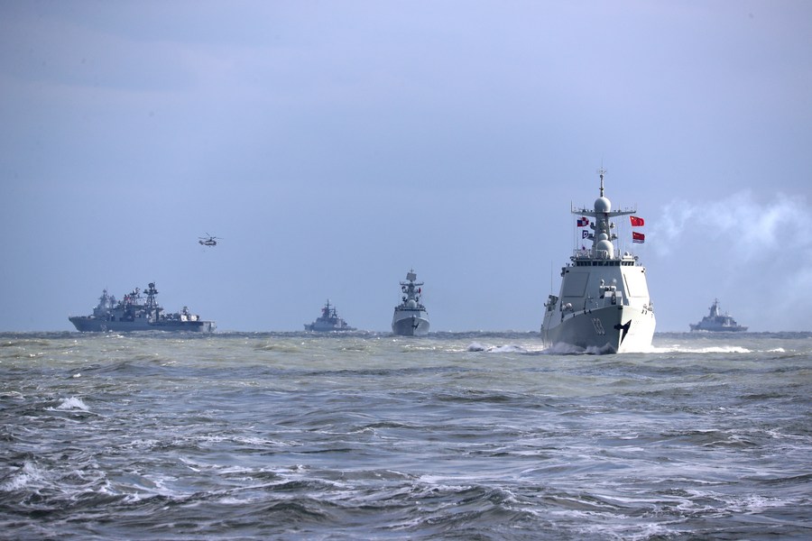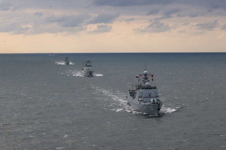 Des navires de guerre des marines chinoise et russe après l'exercice naval conjoint "Joint Sea 2022", en mer de Chine orientale, le 27 décembre 2022. (Photo : Sun Fei)