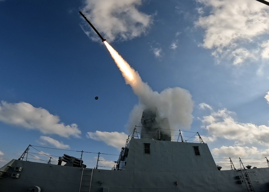 Des navires de guerre de la marine chinoise naviguent en formation après l'exercice naval conjoint "Joint Sea 2022", en mer de Chine orientale, le 27 décembre 2022. (Photo : Sun Fei)