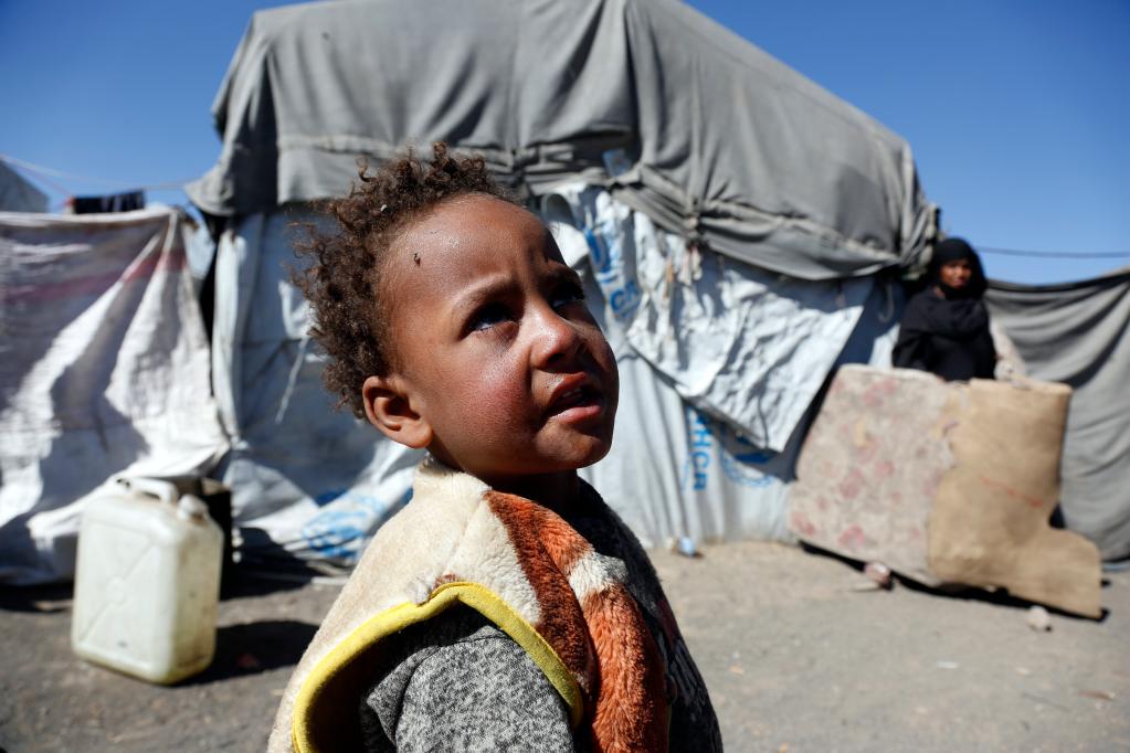 Un enfant à l'intérieur du camp de réfugiés de Dharawan, dans la banlieue nord de Sanaa, la capitale du Yémen, le 7 décembre 2022. (Xinhua/Mohammed Mohammed)