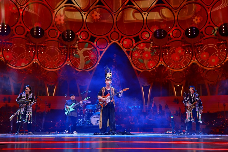 DUBAI, 16 janvier (Xinhua) -- Des musiciens présentent un spectacle, qui fait partie d'un événement célébrant le Nouvel An chinois à venir, à l'Expo City Dubaï, le site de l'Expo 2020 Dubaï, aux Emirats arabes unis (EAU), le 14 janvier 2023. Baptisée "Grande parade du Nouvel An chinois", la parade de deux kilomètres a attiré des millers de spectateurs. (Xinhua)