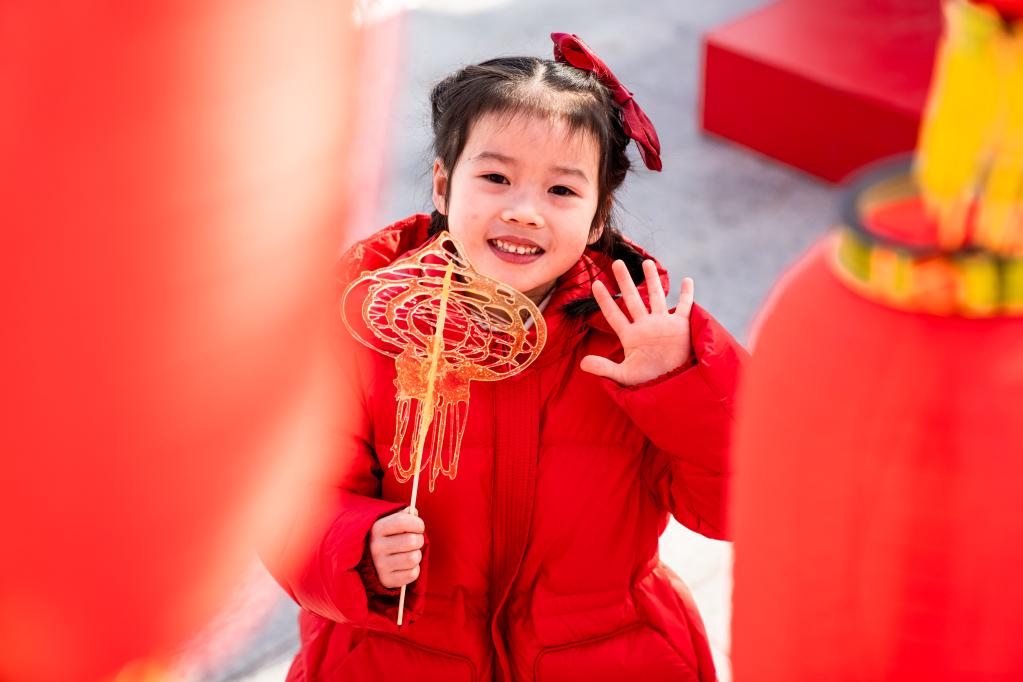 ENSHI, 19 janvier (Xinhua) -- Une petite fille dans un marché sur le thème de la fête du Printemps à Wuhan, dans la province chinoise du Hubei (centre), le 18 janvier 2023.