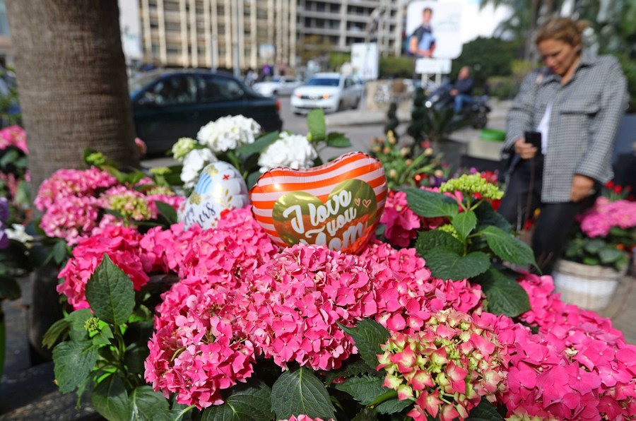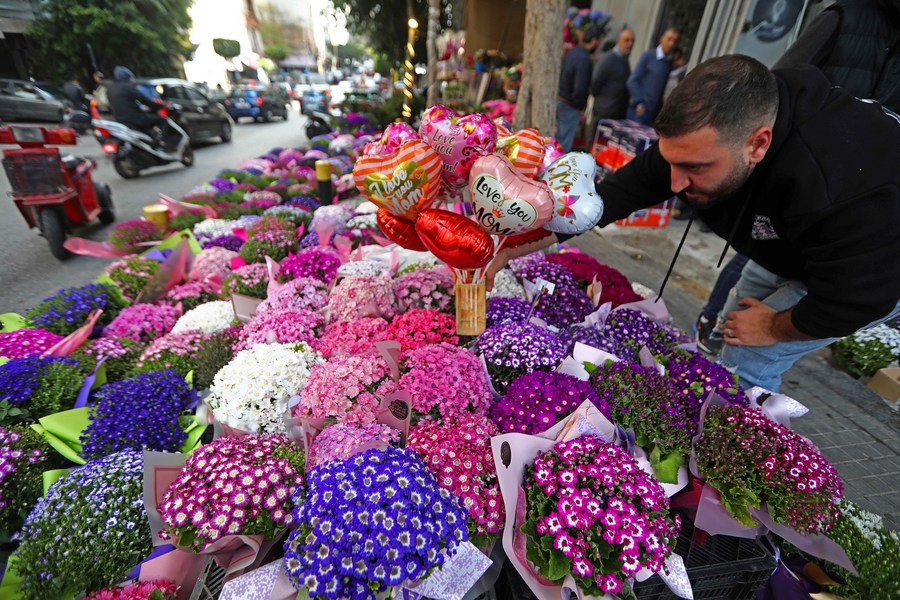 Photo prise le 20 mars 2023 montrant des fleurs préparées pour la fête des mères à Beyrouth, au Liban. Les habitants locaux célèbrent la fête des mères le 21 mars. (Xinhua/Bilal Jawich)