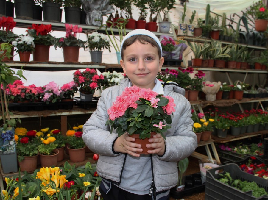 Un enfant choisit des fleurs pour la fête des mères à Hasbaya, dans le sud du Liban, le 20 mars 2023. Les habitants locaux célèbrent la fête des mères le 21 mars. (Xinhua/Taher Abu Hamdan)