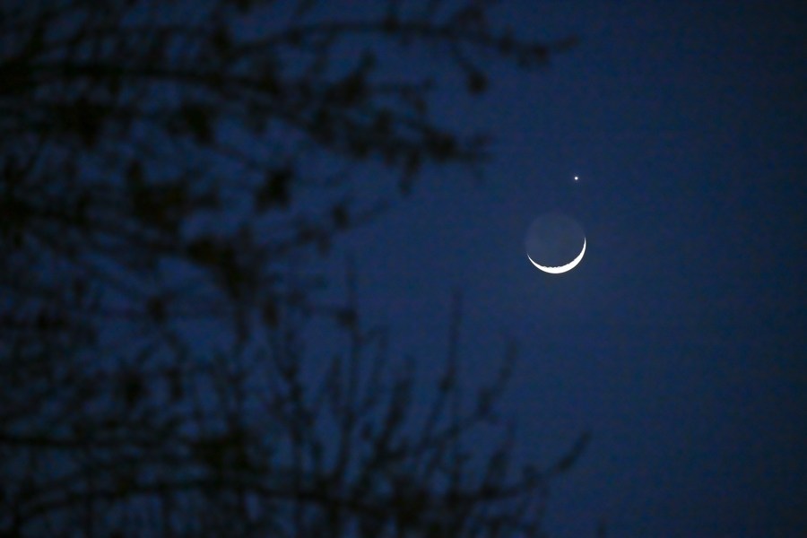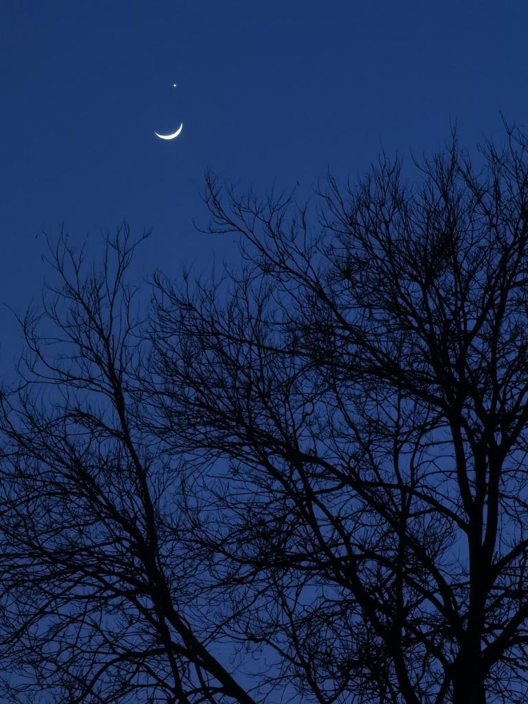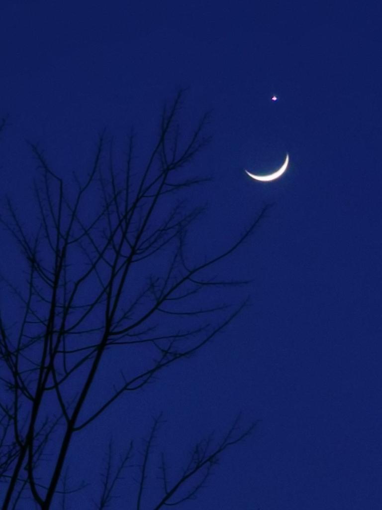 Photo prise à Beijing avec un téléphone portable de la planète Vénus et d'un croissant de lune, le 24 mars 2023. (Photo : Luo Xiaoguang)