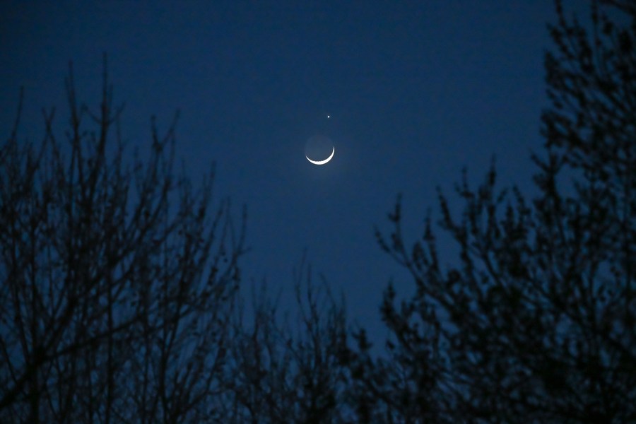 Photo prise à Beijing de la planète Vénus et d'un croissant de lune, le 24 mars 2023. (Photo : Luo Xiaoguang)