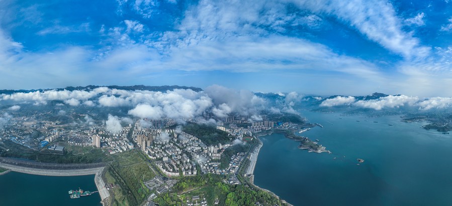 Photo aérienne du barrage des Trois Gorges, dans le district de Zigui de la ville de Yichang, dans la province chinoise du Hubei (centre), le 6 avril 2023. (Photo : Zheng Jiayu)
