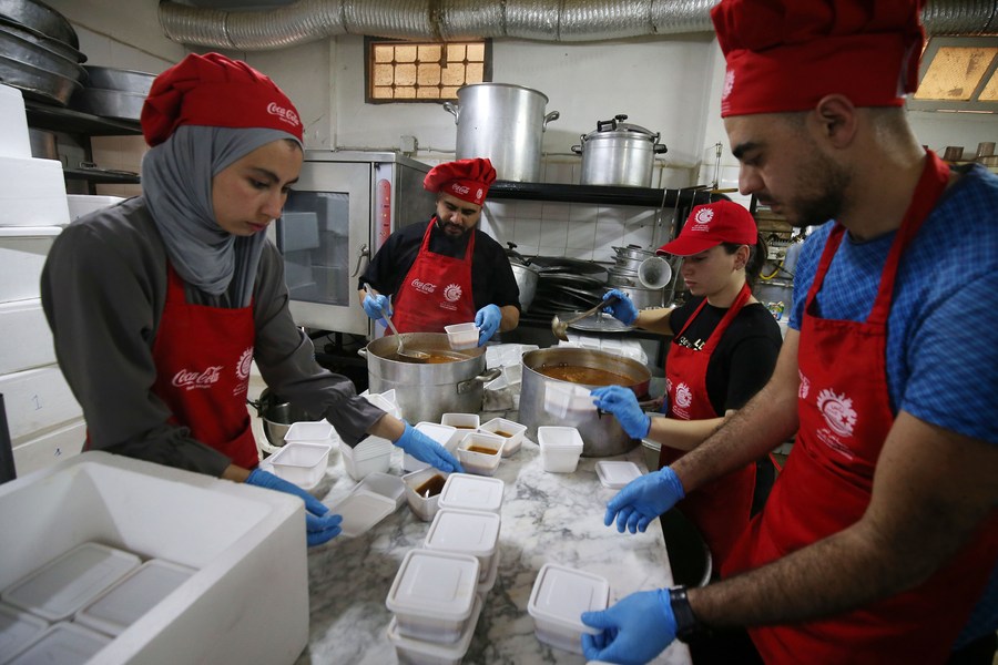 Des bénévoles d'une organisation caritative préparent des repas gratuits de l'iftar au cours du ramadan à Alger, en Algérie, le 12 avril 2023. (Xinhua)
