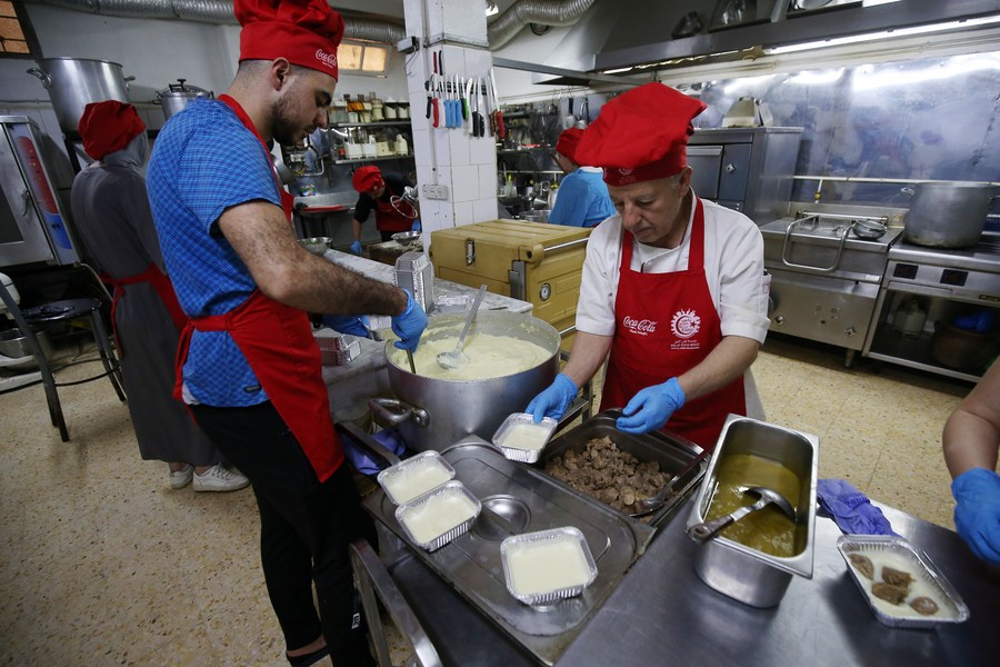 ALGER, 12 avril (Xinhua) -- Des bénévoles d'une organisation caritative préparent des repas gratuits de l'iftar au cours du ramadan à Alger, en Algérie, le 12 avril 2023. (Xinhua)