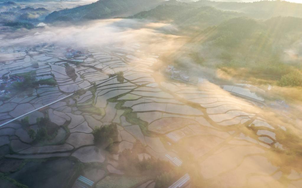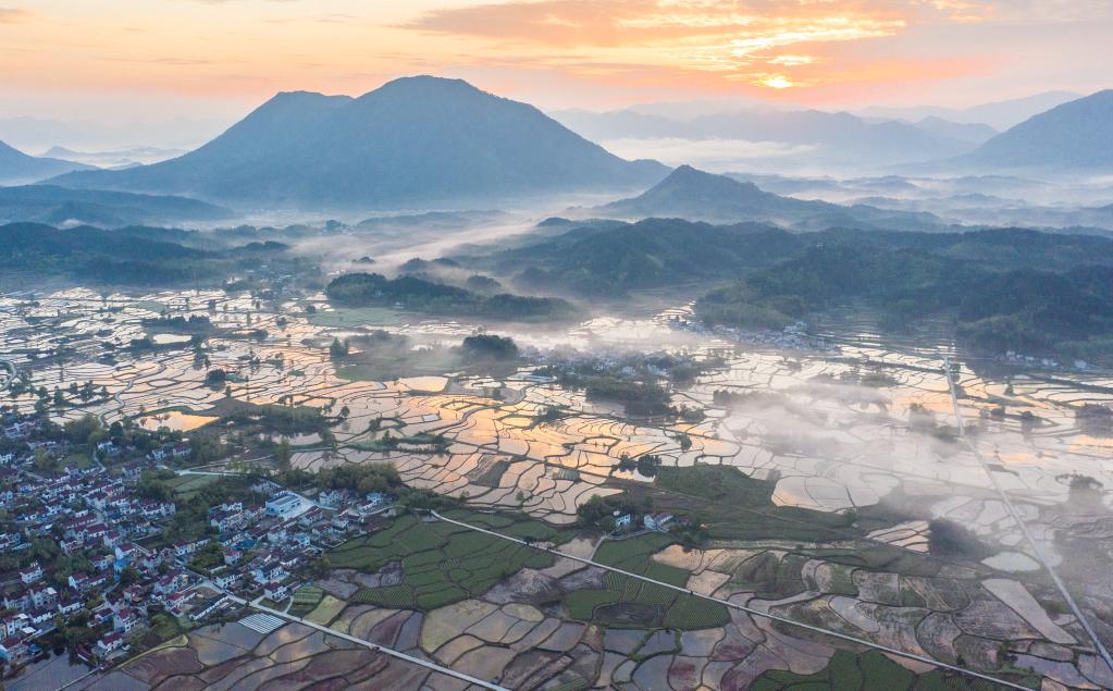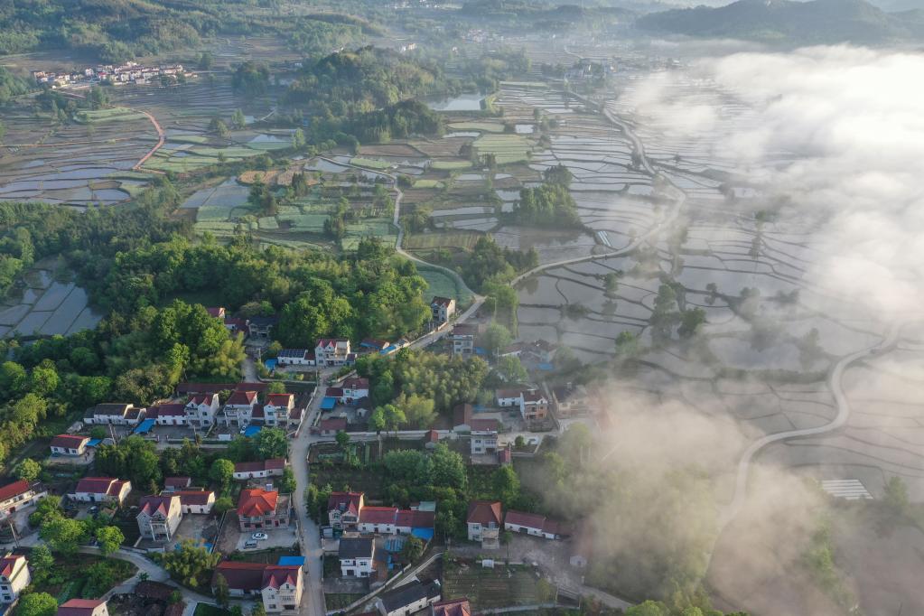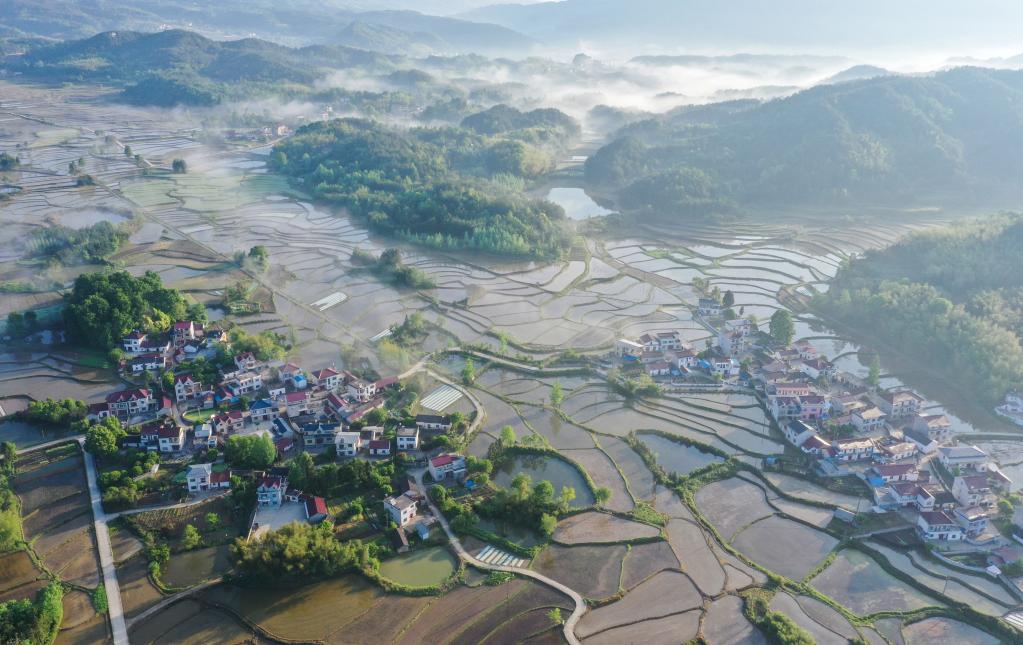 Vue matinale du village de Sanshan, à Jingde, district de la ville de Xuancheng, dans la province chinoise de l'Anhui (est), le 27 avril 2023. (Photo : Jiang Jianxing)