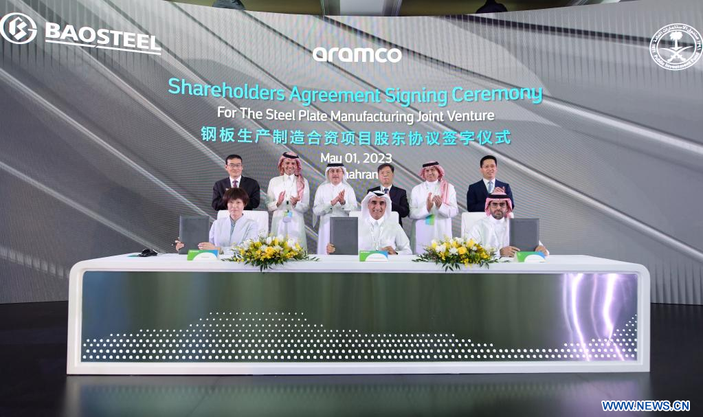 RIYAD, 1er mai (Xinhua) -- L'entreprise saoudienne Saudi Aramco, la société chinoise Baoshan Iron & Steel et le Fonds d'investissement public (PIF) saoudien ont signé lundi un accord au niveau des actionnaires en vue de bâtir un complexe intégré de production de tôle en Arabie saoudite.