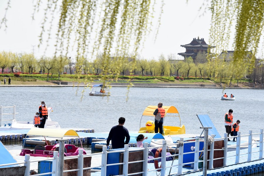 Des visiteurs dans un parc de Qingdao, dans la province chinoise du Shandong (est), le 8 avril 2023. (Photo : Li Ziheng)