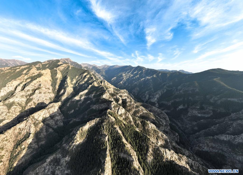 Paysage de la réserve naturelle de niveau national des monts Helan, dans la bannière gauche d'Alxa, dans la région autonome de Mongolie intérieure (nord de la Chine), le 11 mai 2023. (Xinhua/Bei He)