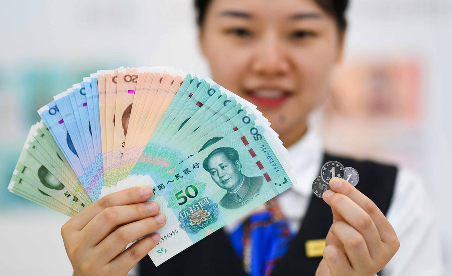 Photo prise le 30 août 2019 montrant des pièces de monnaie et des billets de banque faisant partie de l'édition 2019 de la 5e série du renminbi. (Xinhua/Chen Yehua)