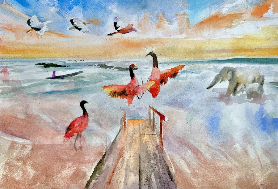 Le dessin d'Annabel Mesplede Albert, lauréate du 3e prix du concours de dessin international pour la gestion du littoral et la biodiversité. (Photo fournie par l'Office de Tourisme et de la Culture du Jiangsu)