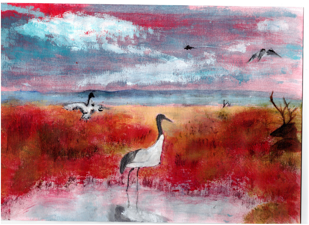 Gabrielle Leray et Marguerite Chevrou, lauréates du 1er prix, ont dessiné ensemble une magnifique œuvre au collège Saint Jean Hulst à Versailles. Comme le dit Gabrielle Leray, "la beauté et la liberté des oiseaux de cette réserve naturelle m'ont inspirée, car nous devons vraiment travailler à préserver cette harmonie existante au Jiangsu, car il s'agit de notre avenir à tous".
