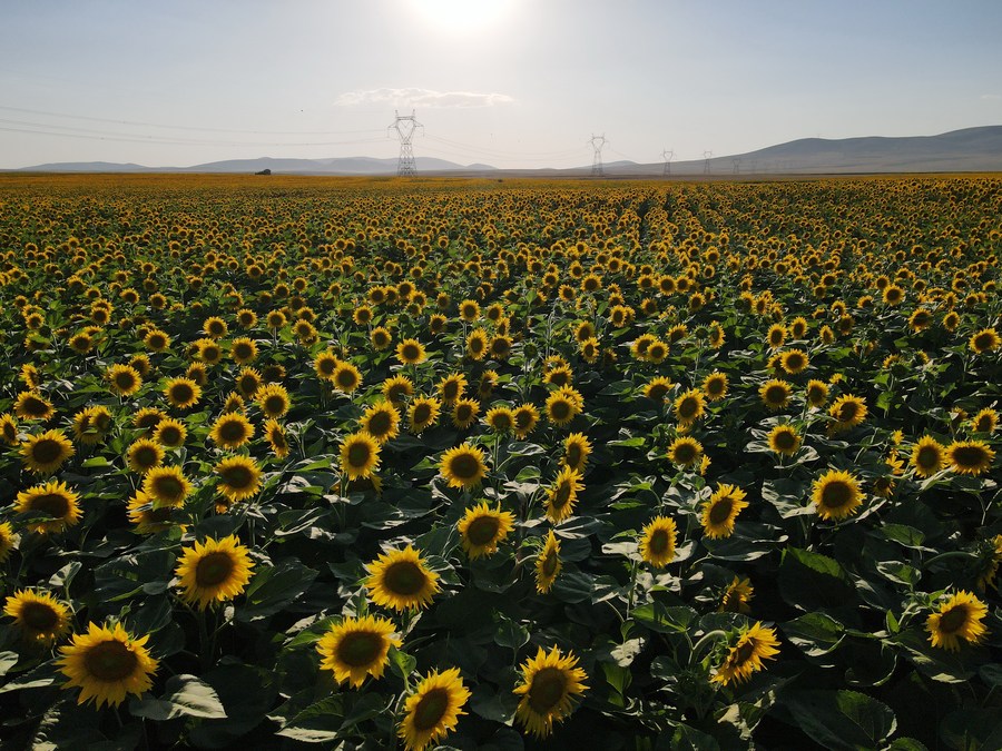 ANKARA, 16 juillet (Xinhua) -- Photo aérienne prise le 15 juillet 2023 montrant un champ de tournesols dans la province d'Ankara, en Turquie. (Xinhua/Mustafa Kaya)