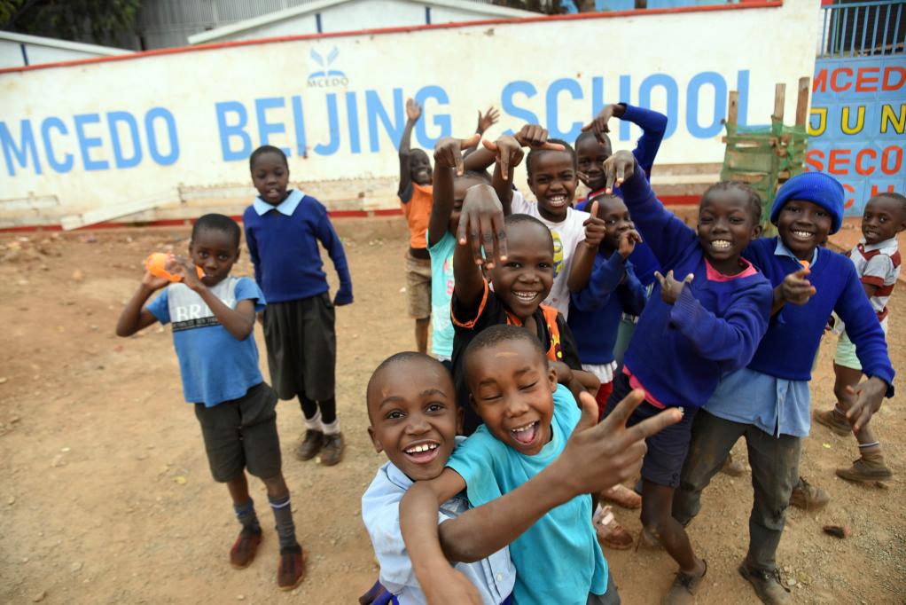 NAIROBI, 28 juillet (Xinhua) -- Des élèves de l'école Mcedo Beijing jouent dans le quartier de Mathare à Nairobi, au Kenya, le 28 juillet 2023. (Xinhua/John Okoyo)