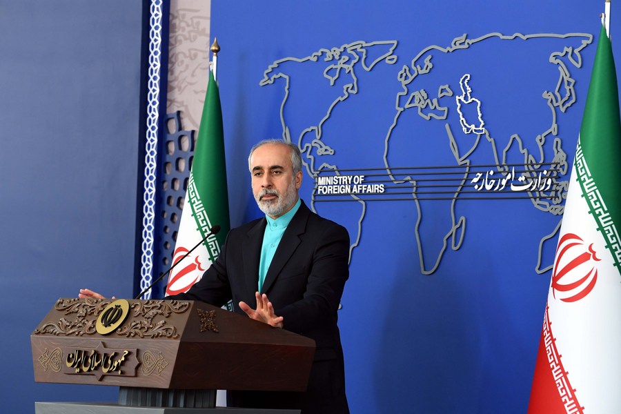 Nasser Kanaani, porte-parole du ministère iranien des Affaires étrangères, s'exprime lors d'une conférence de presse à Téhéran, en Iran, le 17 avril 2023. (Xinhua/Shadati)